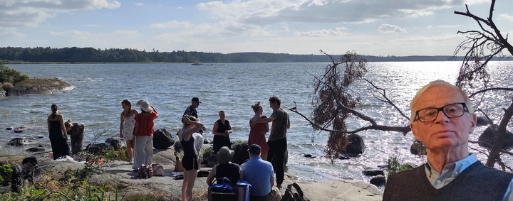 Här härlig sommarbild från vår traditionella utflykt till västsidan av Kållands halvö. Hindens rev är landtungan i bakgrunden. På denna sidan halvön är vattnet ofta varmare, men det är inte helt lätt att ta sig i vattnet, för oss gamlingar i alla fall.